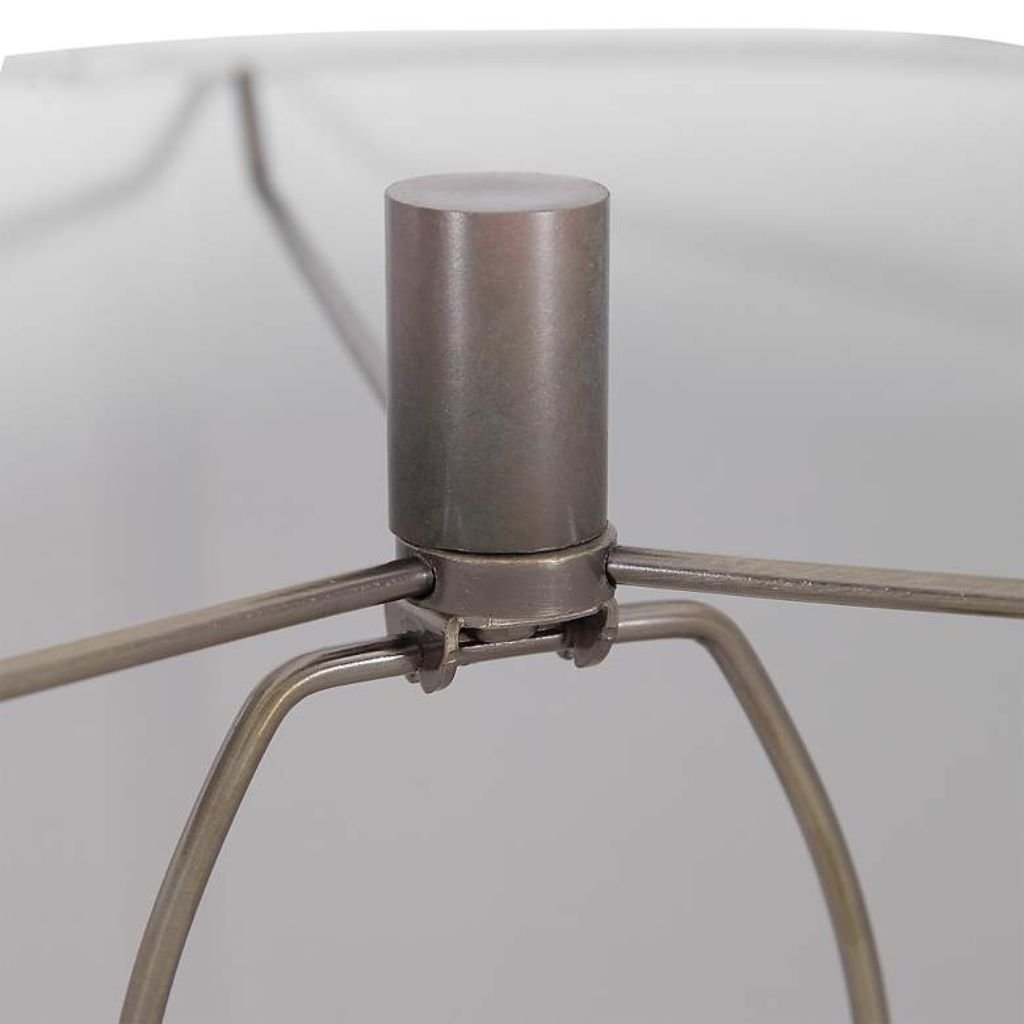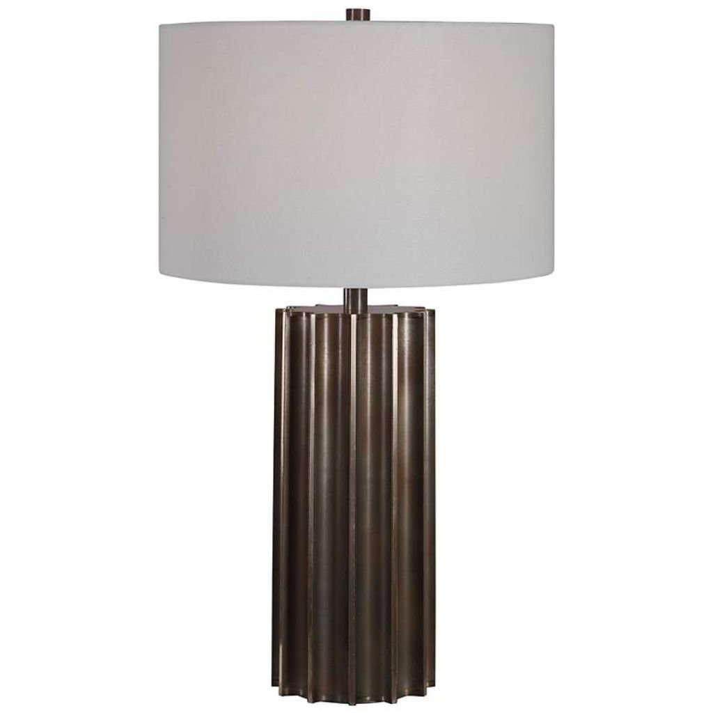 This Khalio modern industrial table lamp from Uttermost is a versatile and stylish choice, offering a commanding presence with refined details, sculpted design, and a soft linen shade that enhances both function and aesthetic.