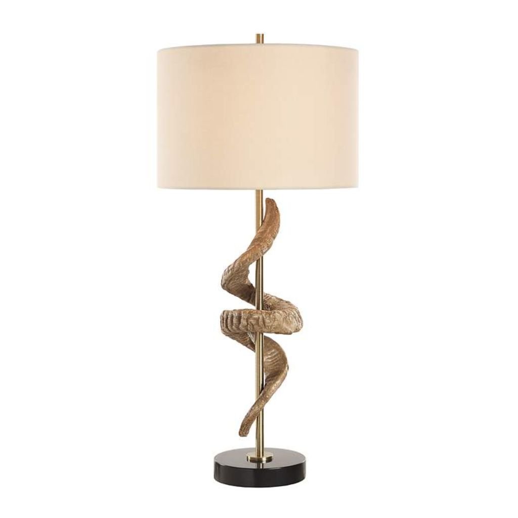 With its striking ram’s horn design and antique finish, this table lamp from Uttermost blends nature-inspired artistry with practical lighting, making it a distinctive addition to any thoughtfully styled interior.