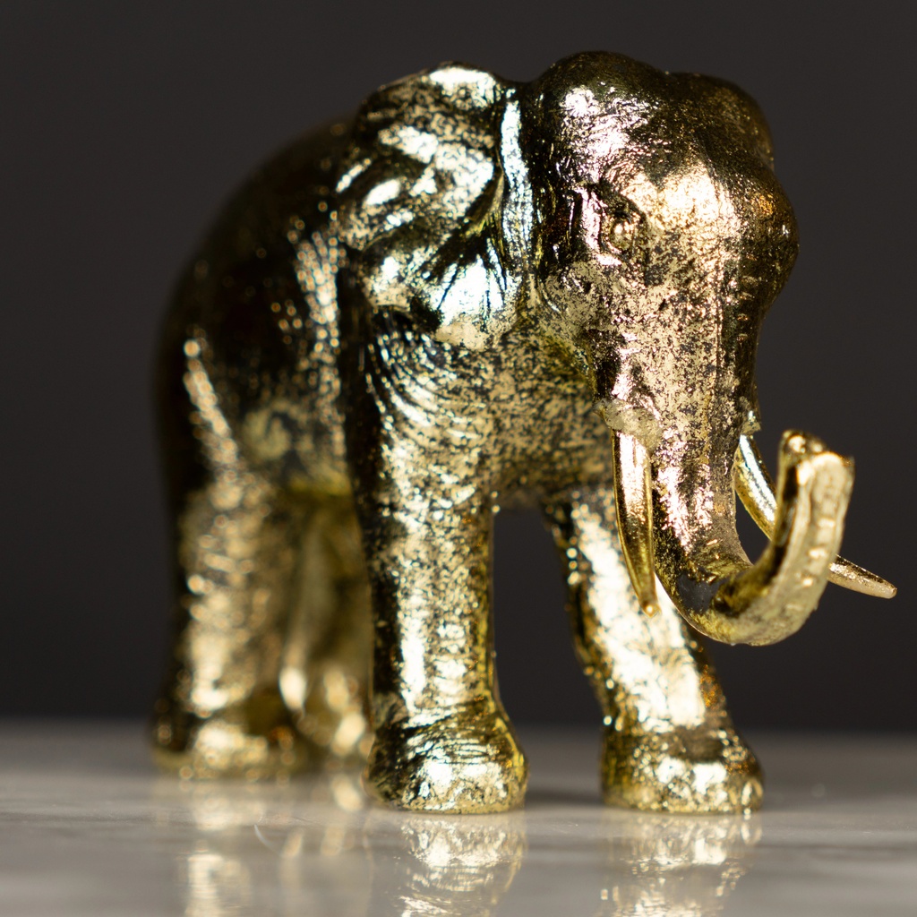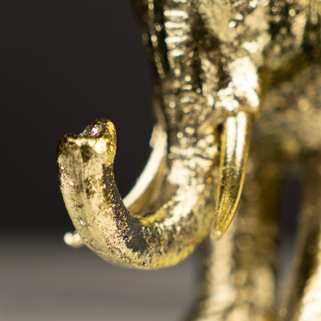 This elephant figurine boasts a unique antique gold finish that catches the light and adds warmth to any room. Its distressed metallic look gives it an aged charm, making it a perfect addition to both modern and traditional settings. Whether on a mantel, bookshelf, or coffee table, it’s sure to be a conversation starter.