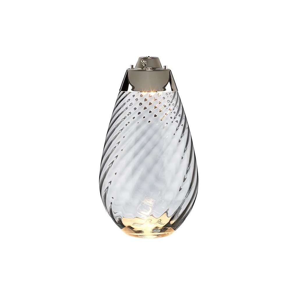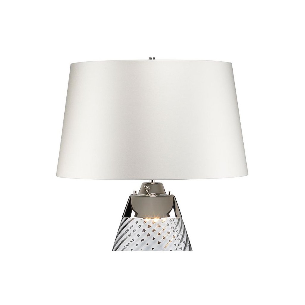 The base is crafted from quality glass or crystal, giving it a clear, light-catching quality that adds brightness to any room. The material is substantial in weight and catches ambient light in a way that solid opaque bases simply cannot. This makes it an especially effective choice for spaces that benefit from reflected light.