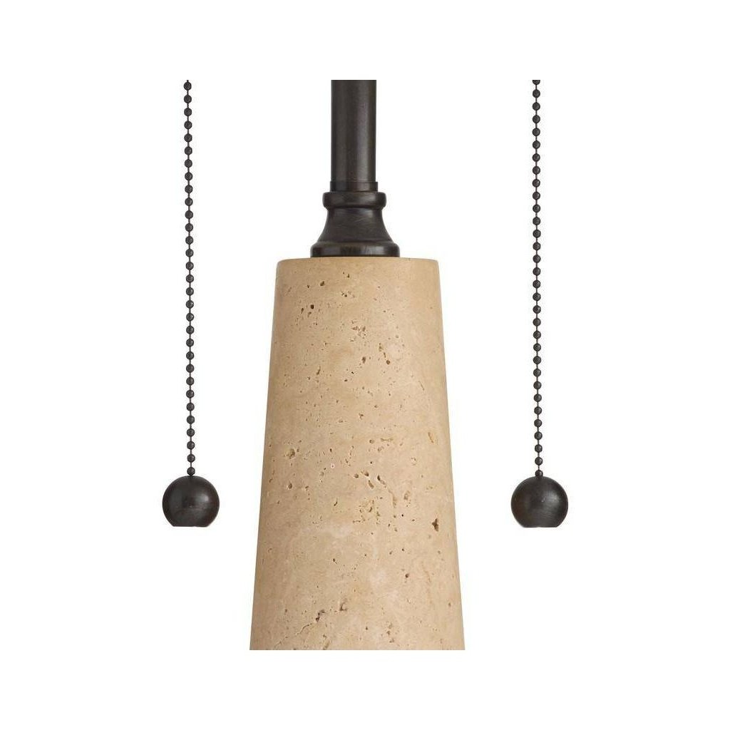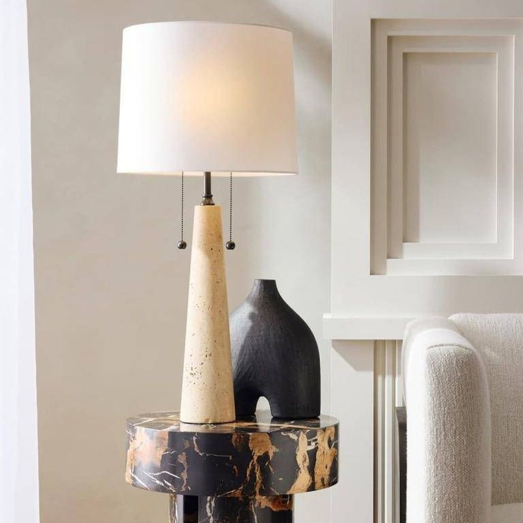 This table lamp is built around a quality travertine base with hardware and shade choices that complement the overall design. The styling is clean and versatile — easy to place in most rooms without rethinking the layout. Table Lamp detailing adds a refined finishing touch.