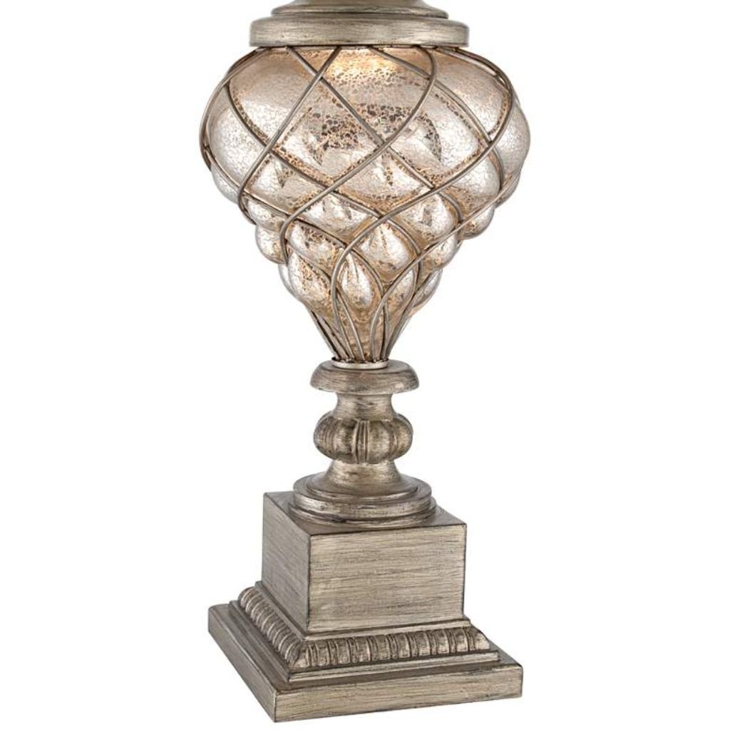 Mercury glass lamp body with silver swirl lattice detailing