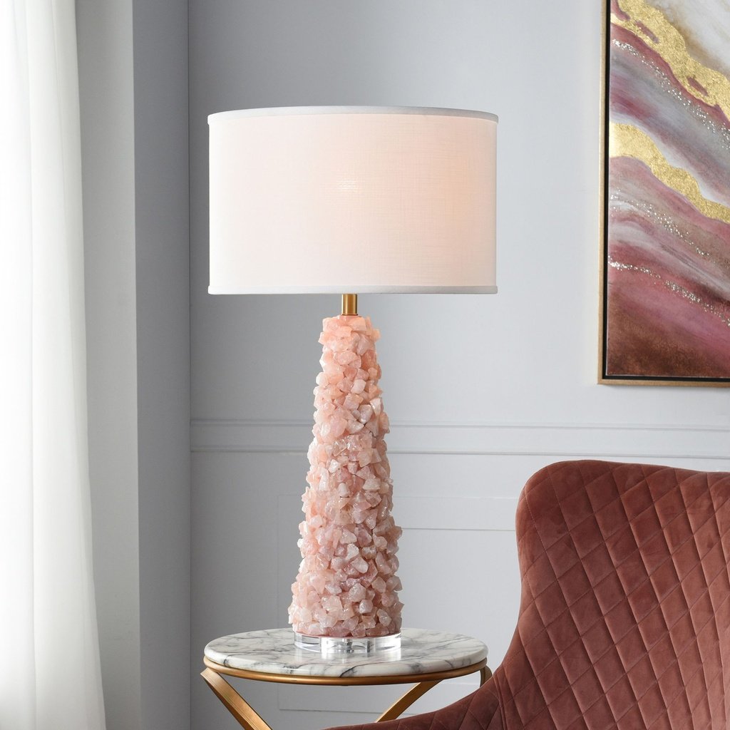 In a living room or bedroom, the right quartz stone makes an immediate difference—and this one earns its place. Its quartz base adds grounded visual weight, while the shade spreads a warm, usable glow. The design is confident without being fussy, and it integrates easily into both styled and casual environments. Quality stone accents make this lamp a lasting addition to any well-appointed space.