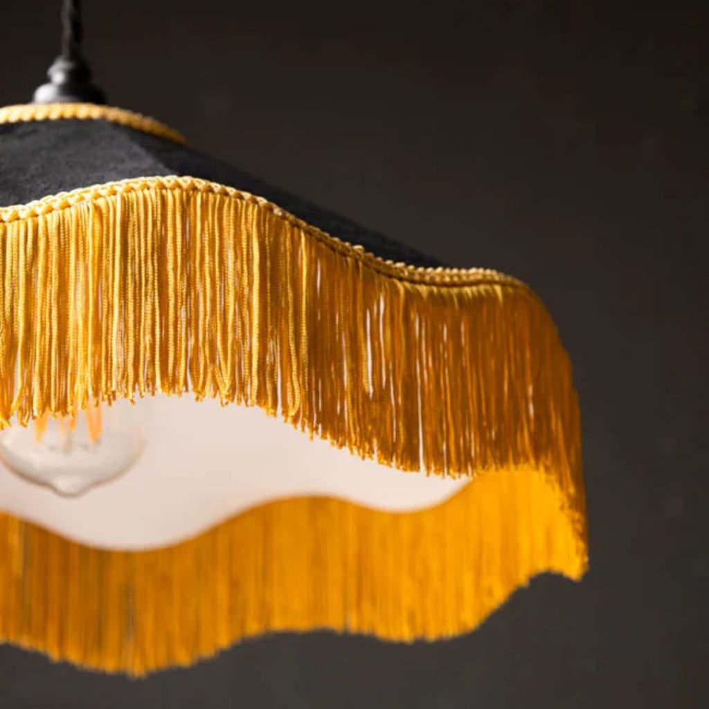 BLACK AND GOLD TASSEL CEILING LIGHT SHADE