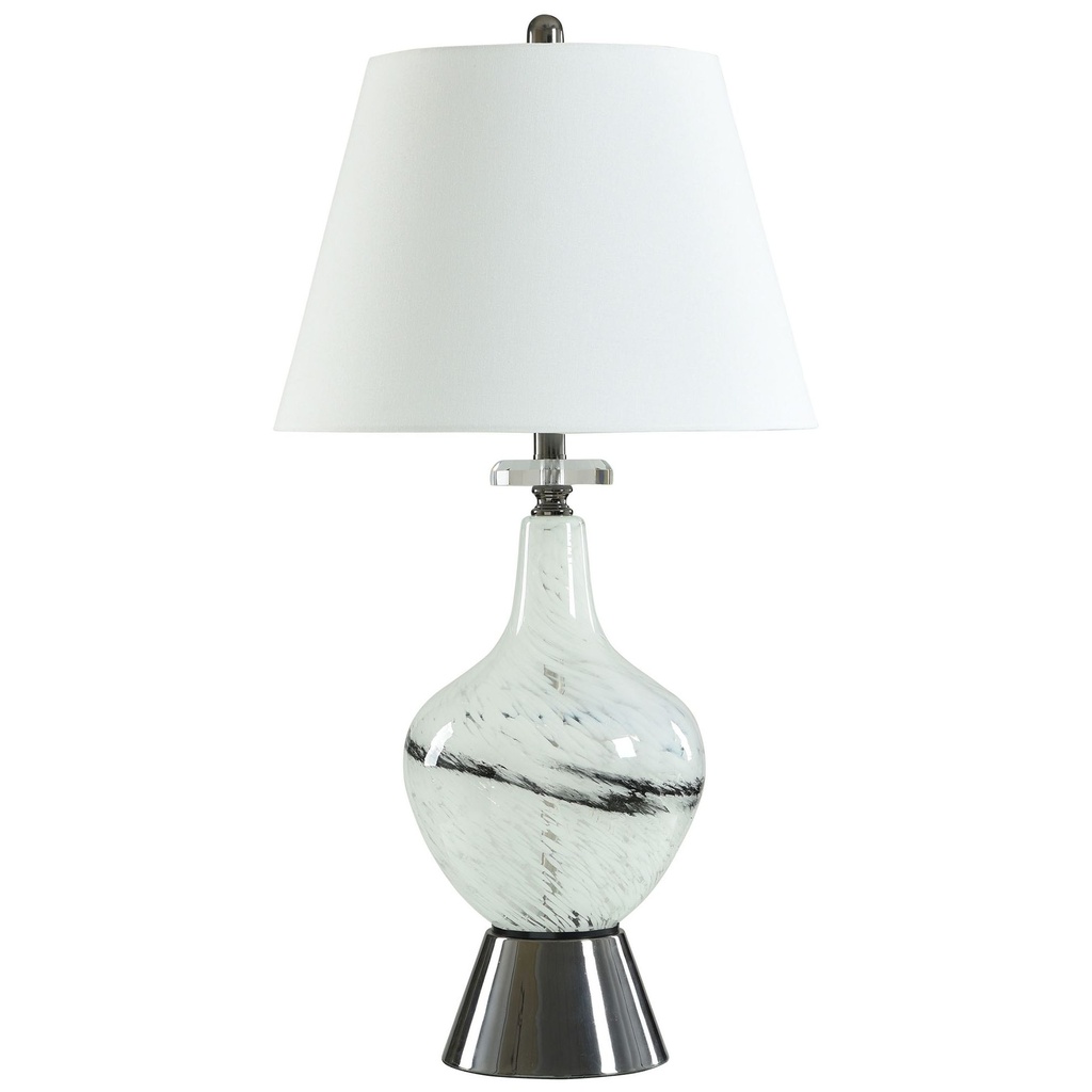 Most table lamps light a room. This one sculpts it. The Style craft Ice Castles is a white and black glass table lamp that builds its visual case through material contrast and structural drama — white and black glass combined into a base that refracts and reflects light with a crystalline complexity that solid ceramic or resin alternatives cannot approach. The interplay between white and black glass gives the base a graphic, high-contrast quality that reads boldly from across the room and rewards close inspection with surface depth and light movement. A white shade crowns the composition cleanly, providing a neutral resolution to the drama below without diluting it. At 33.0 inches tall on a slender 7.0-inch base, the Ice Castles achieves the architectural versatility of a statement piece within the footprint of a conventional table lamp.