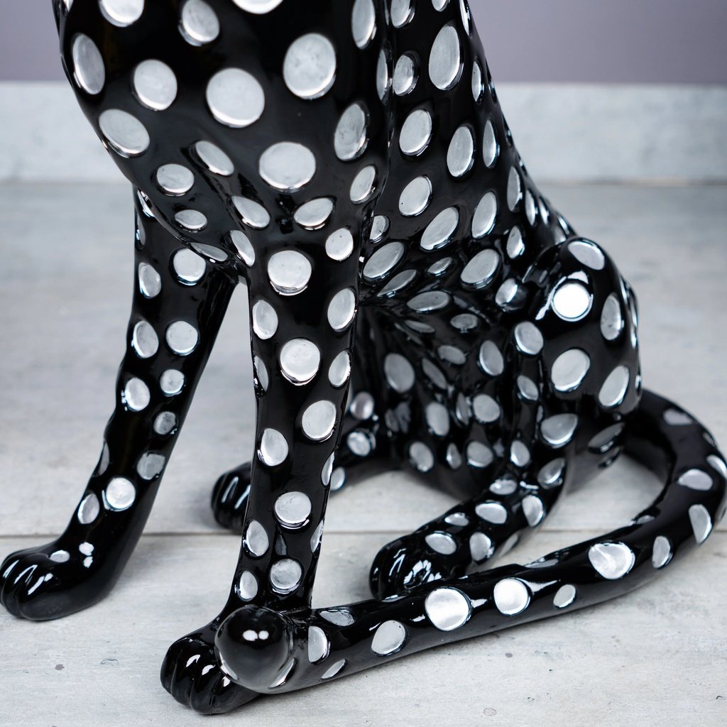 The Black Majestic Leopard is designed to stand out. Its sleek black finish, adorned with striking silver polka dots, offers a bold contrast that’s sure to catch the eye. Whether placed in a living room, lounge, or office, it brings a sense of luxury and style to any modern interior.