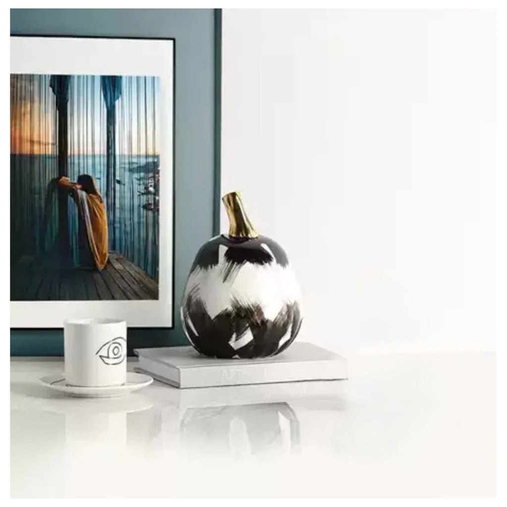 I am absolutely obsessed with this NoirLuxe Stroke pumpkin! The bold, hand-painted black and white brushstrokes give it such a chic, modern edge, and that gold stem is the perfect touch of luxury. It’s not just for fall—it looks like a high-end designer piece on my coffee table all year round. The quality is exceptional and it feels very substantial. A total must-have for any art lover!