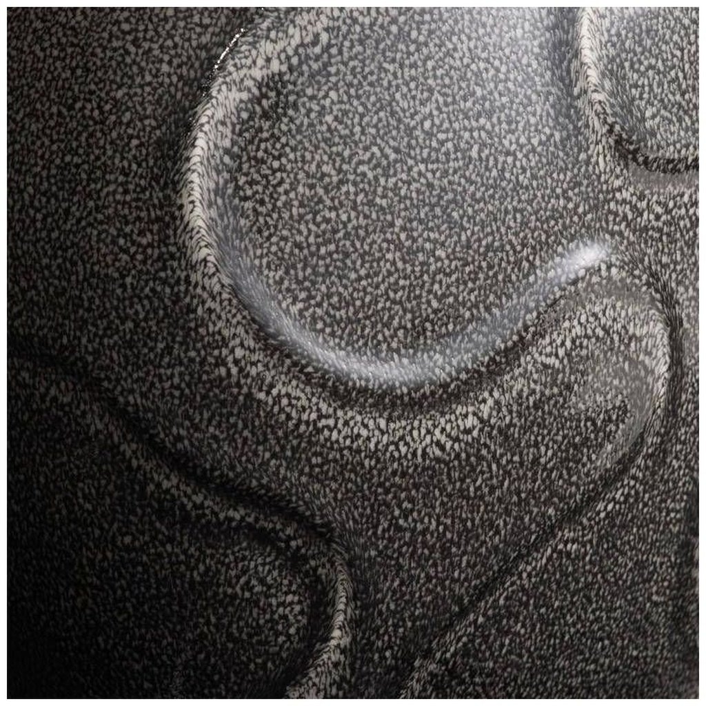 The obsidian reactive finish isn’t a flat or painted black — it has real depth, with subtle shifts in texture and luminosity across the surface depending on how light hits it. No two lamps fire identically, so natural variation in finish should be expected and appreciated.