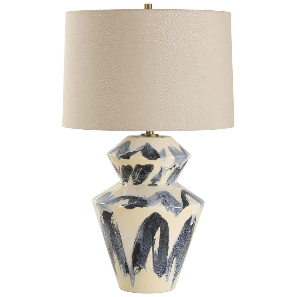 BLUE AND CREAM CERAMIC TABLE LAMP