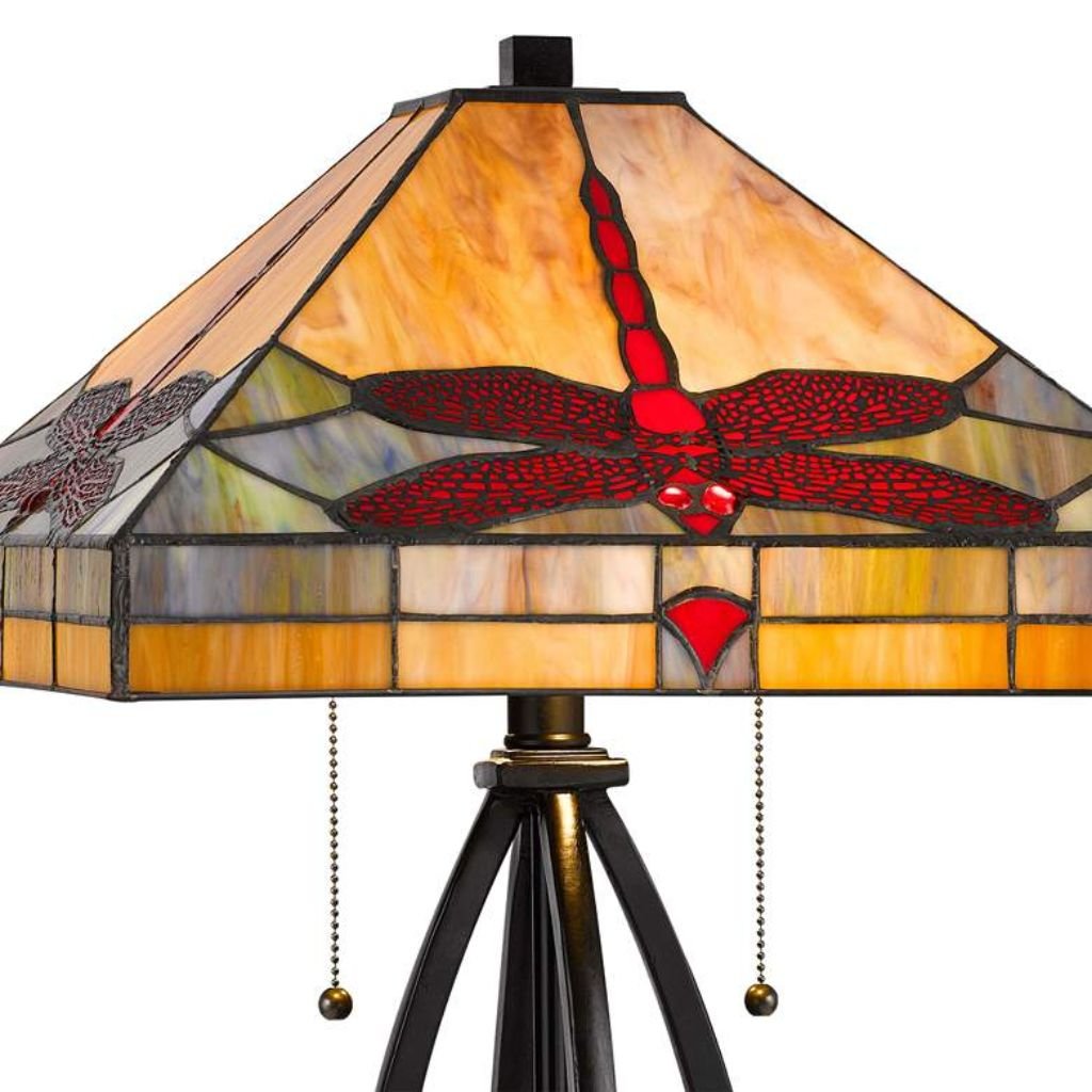 CAL LIGHTING DRAGON FLY ART GLASS TABLE LAMP