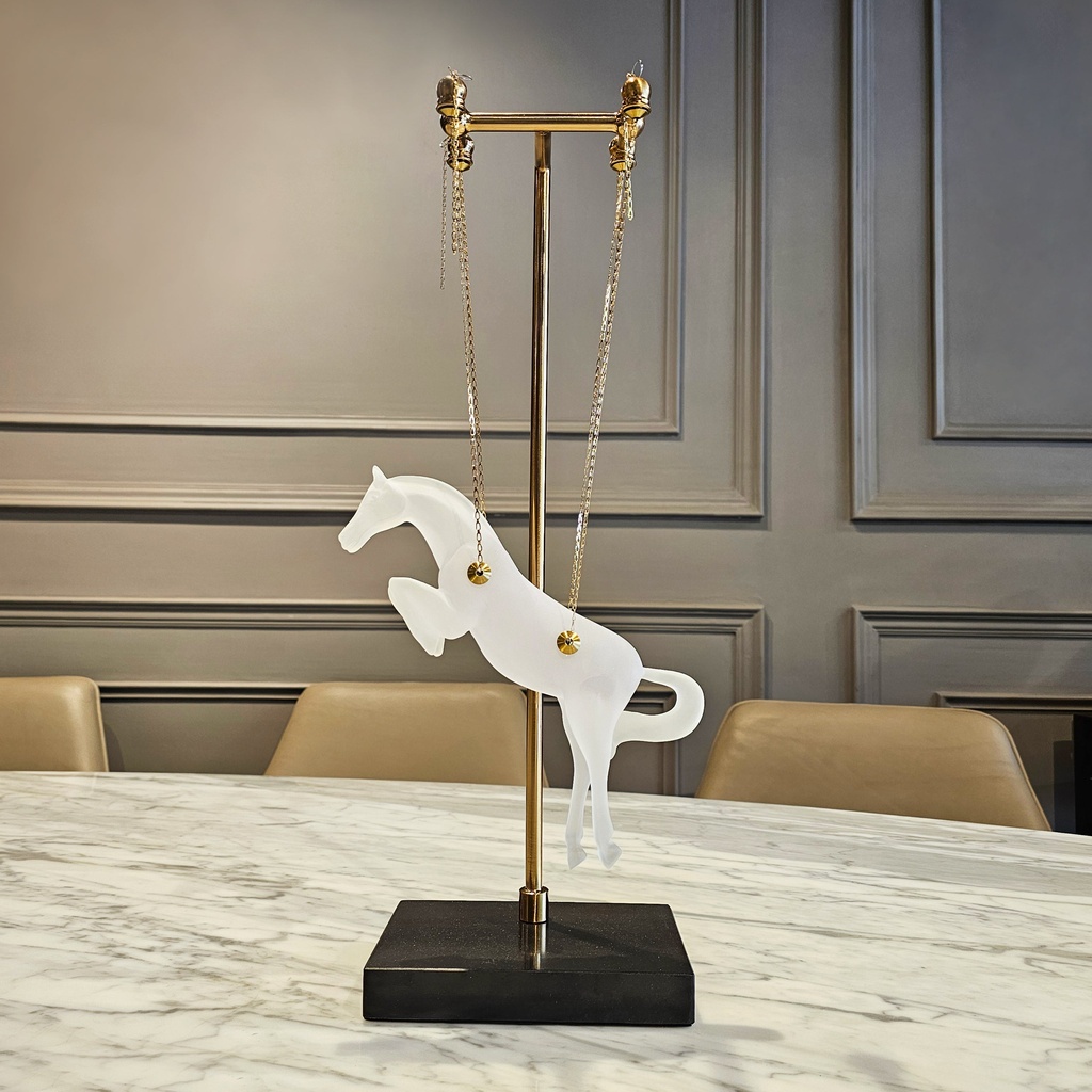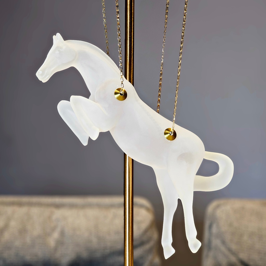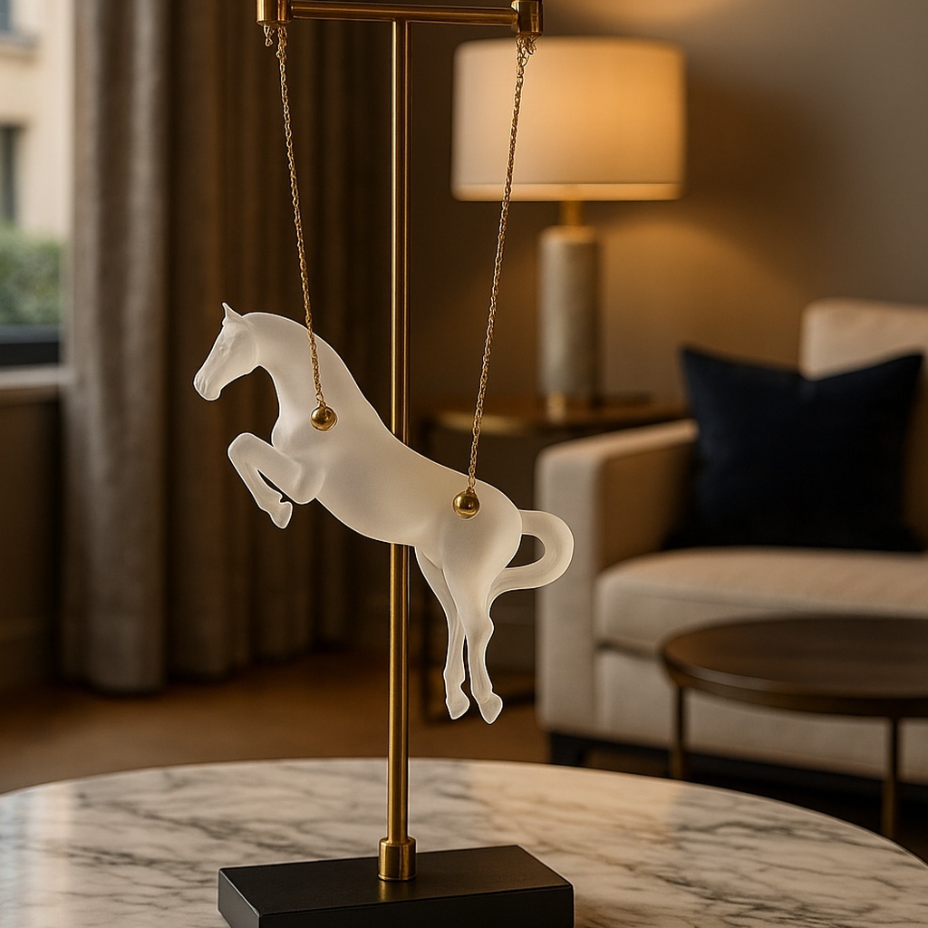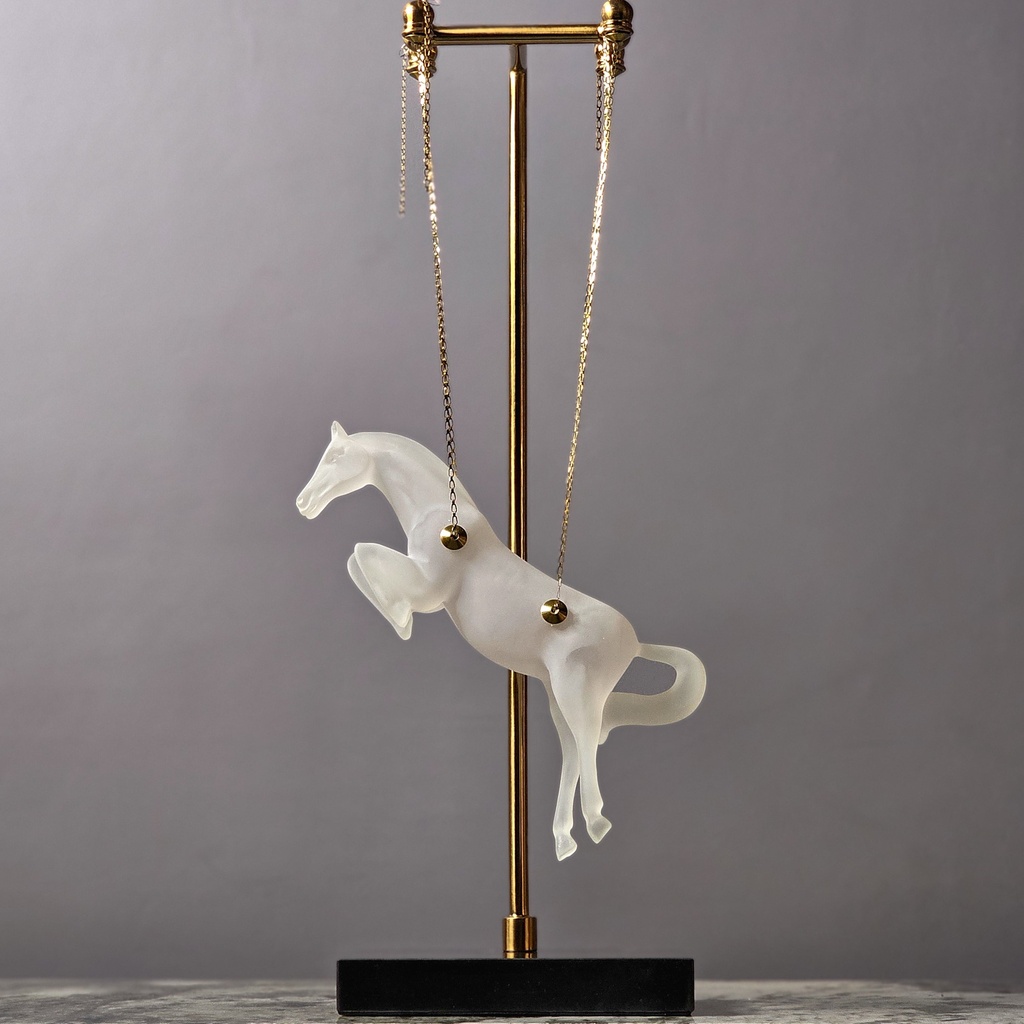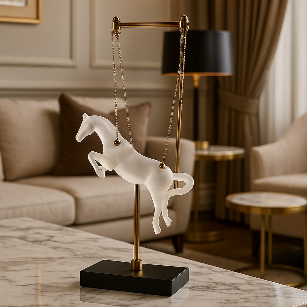 I am absolutely enchanted by this Celestial Gallop hanging sculpture! The frosted finish on the horse gives it such a dreamy, ethereal look, and the gold accents add that perfect touch of premium luxury. It’s such a unique, graceful piece that looks stunning on my marble console. The quality is exceptional, and it truly feels like a boutique gallery find. It’s the ultimate statement piece for any equestrian lover!