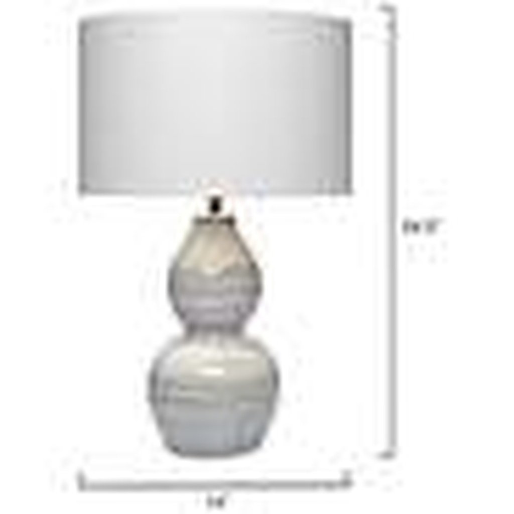 At 24.5 inches tall, this lamp was designed to be seen — and the Jamie Young Catalina delivers on that expectation with a surface that earns its name. The ceramic base is sculpted with a wave-relief texture that moves across the body with the kind of tactile rhythm that stops a hand mid-reach. Paired with a natural linen shade, the combination sits at the intersection of coastal ease and considered craft. As a ceramic wave table lamp, the Catalina brings an organic, sculptural quality to any surface it occupies without demanding a theme-heavy interior to justify it. The ceramic construction keeps the lamp light at just 5 pounds despite its generous proportions, while an 8-foot cord and switch-on-socket control make placement and operation genuinely flexible.