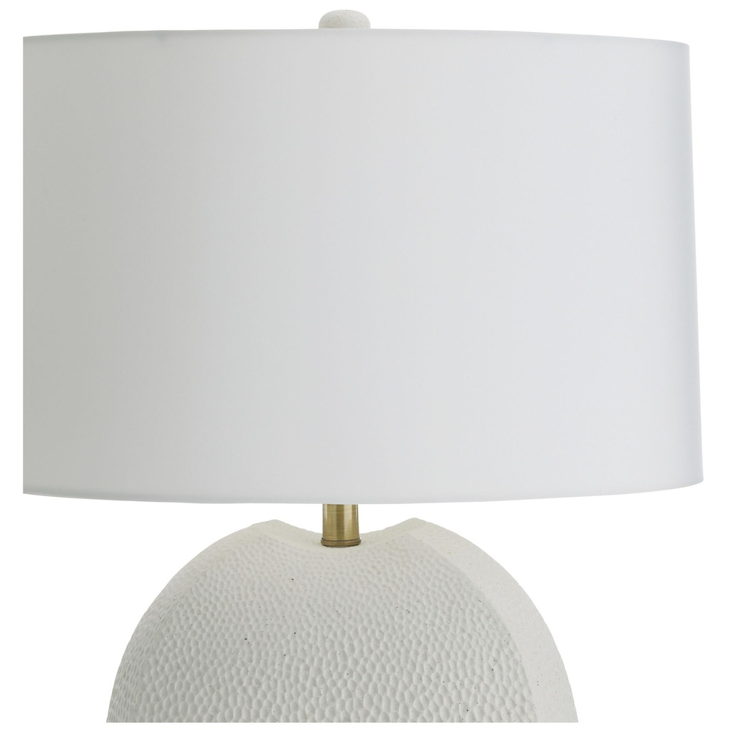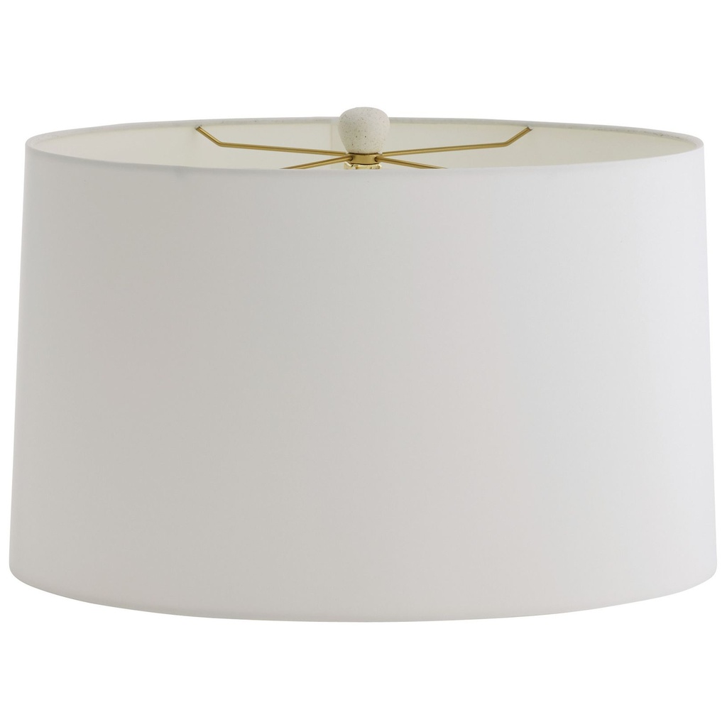 The white ceramic finish is smooth and consistent, lending the lamp a quiet, gallery-like presence. Ceramic at this scale has a satisfying solidity to it — substantial enough at 9 pounds to feel well-made, light enough to reposition without effort.