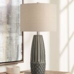 CHARCOAL GRAY STRIPE CERAMIC TABLE LAMP
