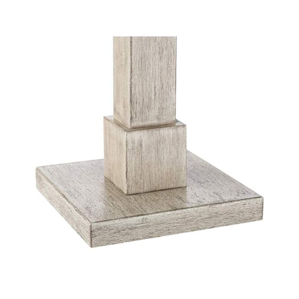 This floor lamp features a square pedestal base crafted from solid willow wood with a pickled wood finish, creating a light, airy look ideal for coastal or casual modern décor.