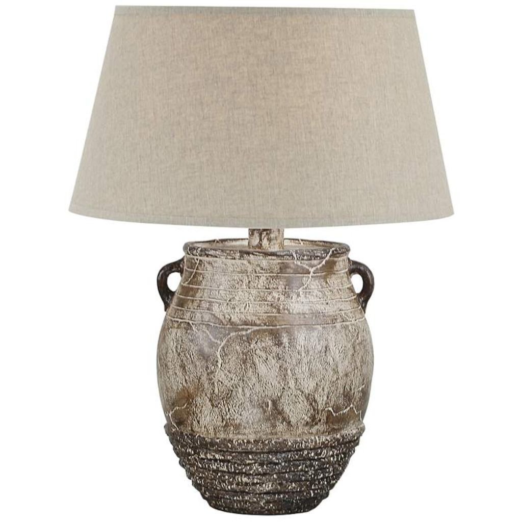 Add heritage-inspired charm to your space with this traditional two-handle jug table LAMP, a beautifully hand-crafted piece made in the USA. Designed to evoke the character of antique pottery, this substantial accent delivers warmth, texture, and timeless appeal.