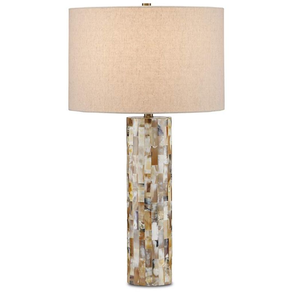 Most table lamps light a room. This one textures it. The Colevile by Currey and Company is built around a ceramic base finished in a cream crackle glaze — a surface treatment that fractures the finish into a fine network of lines, each one catching shadow differently and giving the lamp a depth that solid or glazed finishes simply cannot produce. At 30.25 inches tall, the silhouette is tall and slender, its 5-inch base keeping the footprint minimal while the height commands genuine vertical presence. This modern ceramic table lamp is the kind of piece that works in a coastal bedroom, a transitional living room, or a quietly refined entryway — anywhere understated craftsmanship is the point rather than the afterthought. An off-white linen drum shade, wide and cleanly constructed, completes the composition with a neutrality that lets the crackle base remain the focus.