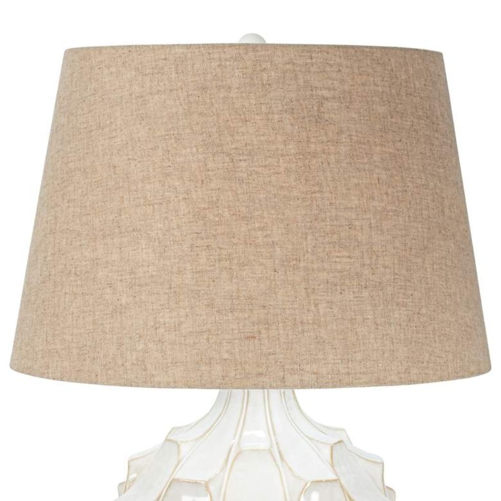 With their hand-applied white glaze, textured ceramic bodies, and warm linen shades, these Possini Euro Design table lamps bring effortless style and functional elegance to your home, making them a versatile lighting solution for a wide range of interiors.