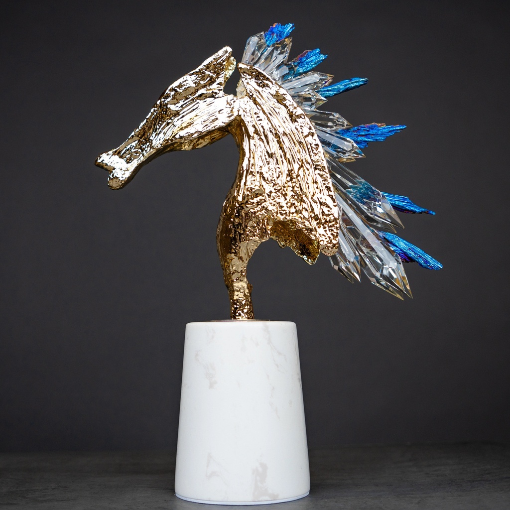 Every element of this piece, from the lifted stance to the flowing crystal mane, has been carefully sculpted to convey motion and energy. It’s a decor piece that feels alive, symbolizing progress and ambition. It’s an ideal choice for spaces that celebrate leadership and forward-thinking, bringing a sense of movement to any room.