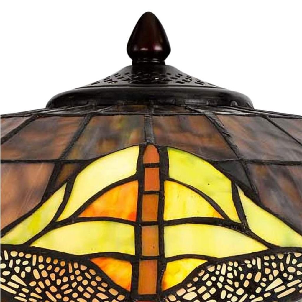 Create a warm, Arts and Crafts atmosphere with this Mission traditional accent table lamp from the Tiffany collection by Cal Lighting. Featuring a vibrant stained glass dragonfly shade and a richly finished base, this piece brings timeless character to libraries, living rooms, or cozy reading corners.