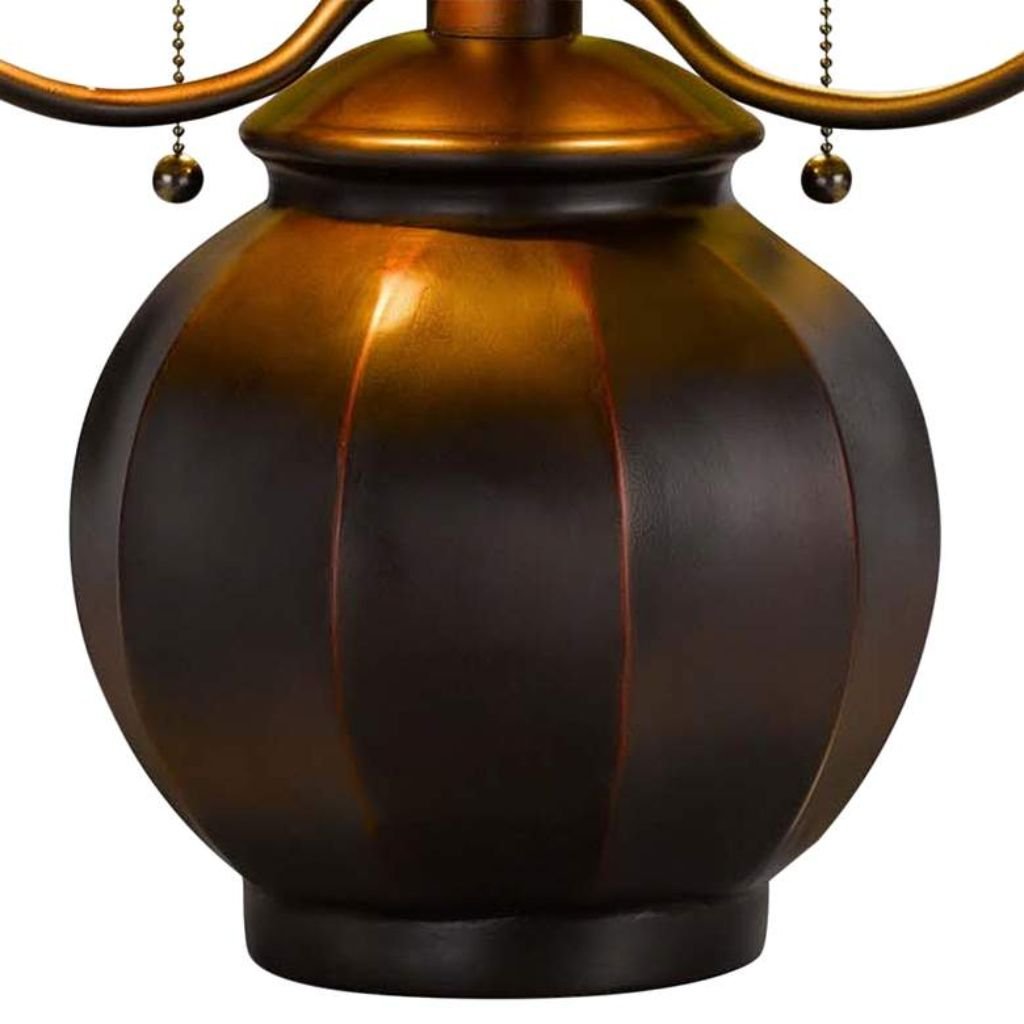 This table lamp showcases a beautifully detailed art glass dome: