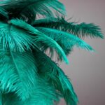 - Materials: Natural feather fronds, glossy metal stem