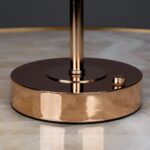 The glossy golden stem provides a clean, vertical anchor beneath the feather canopy, creating a deliberate tension between structured metal and free-form organic plumes. Its high-shine finish amplifies surrounding light and adds warmth to the lamp’s overall presence in a room.