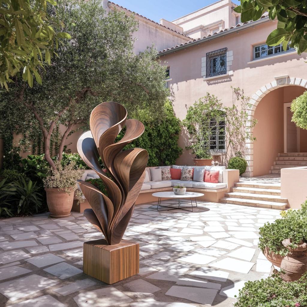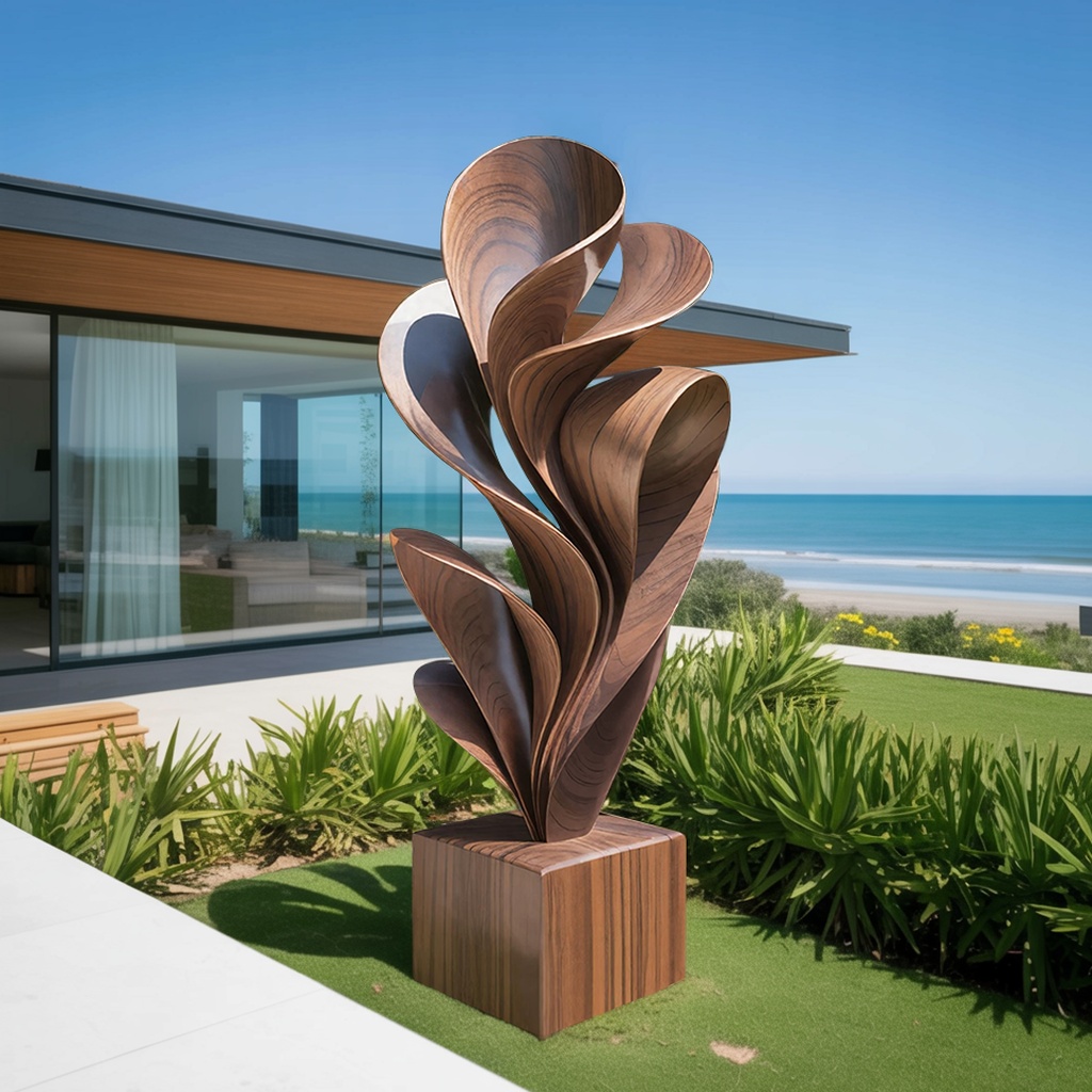 This Solid Wood Petal Sculpture is a total showstopper! The natural wood grain and organic, flowing “petals” give it such an expensive, custom-crafted look. It has a massive presence and feels incredibly premium, standing perfectly against the ocean backdrop. It adds a sophisticated, coastal-chic vibe to my outdoor space that I’m absolutely obsessed with. It’s the perfect statement piece for a curated, high-end home!