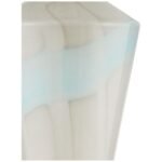 - Color/Finish: White with pale blue-gray drifts; polished nickel accents