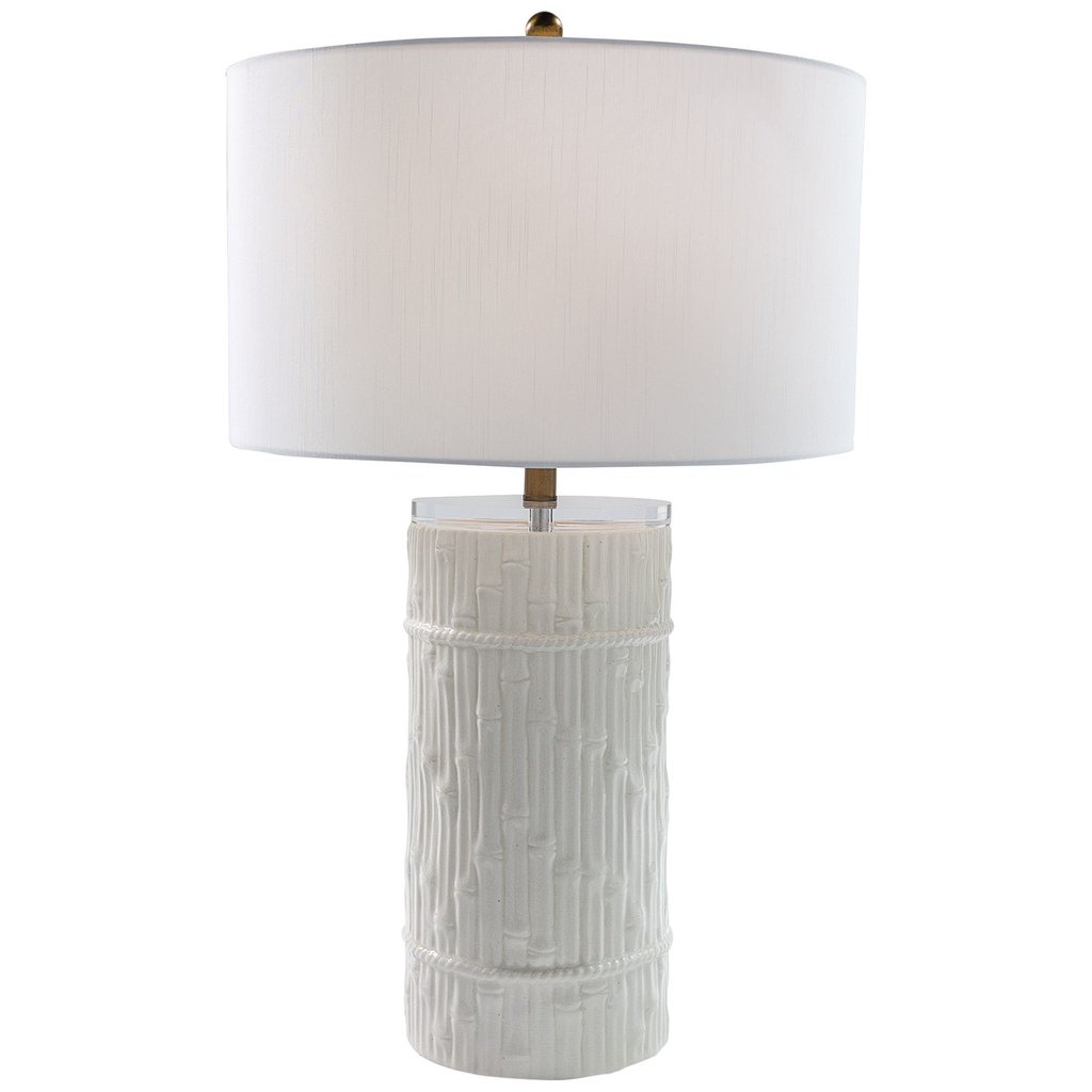 GLOSSY CREAM PORCELAIN CYLINDER TABLE LAMP