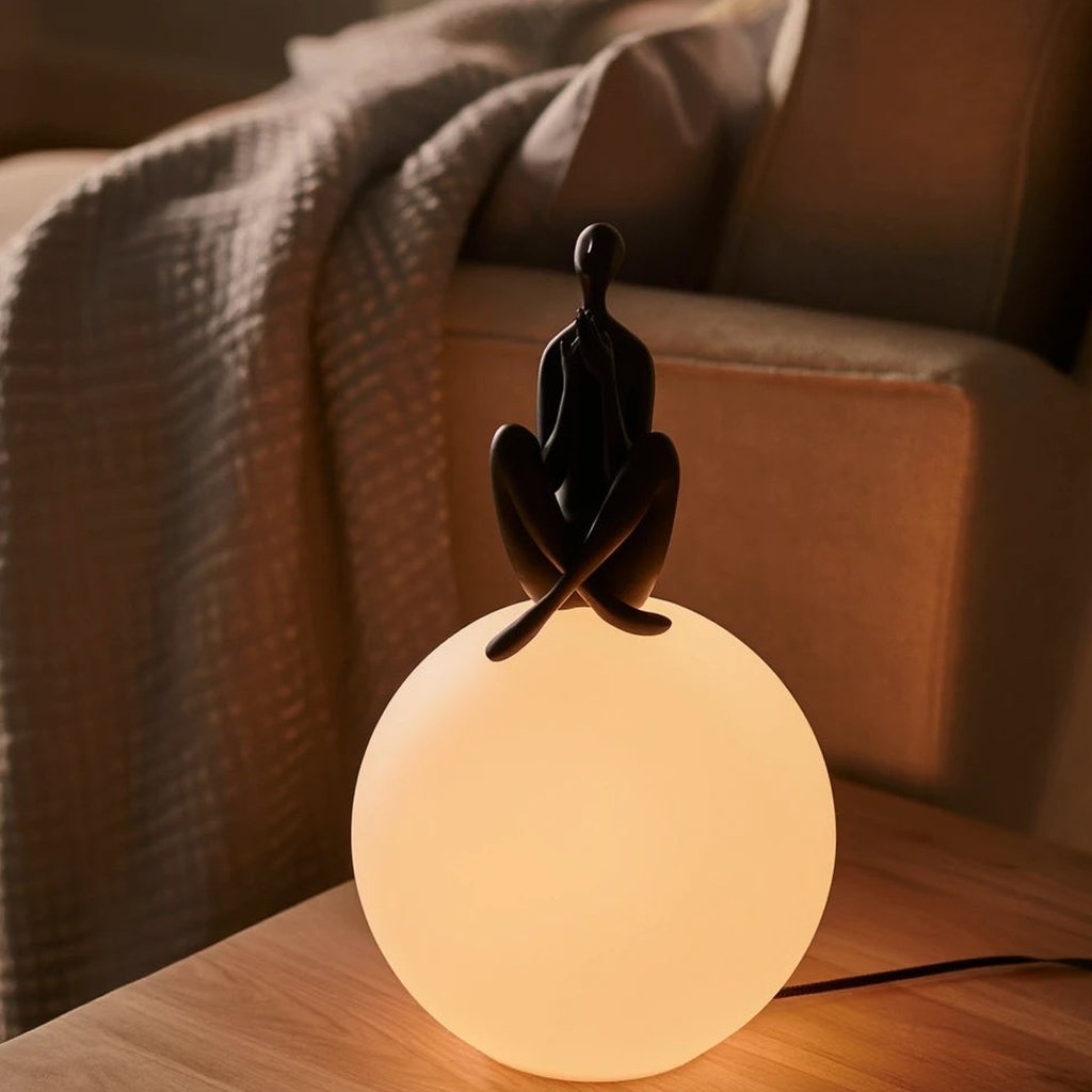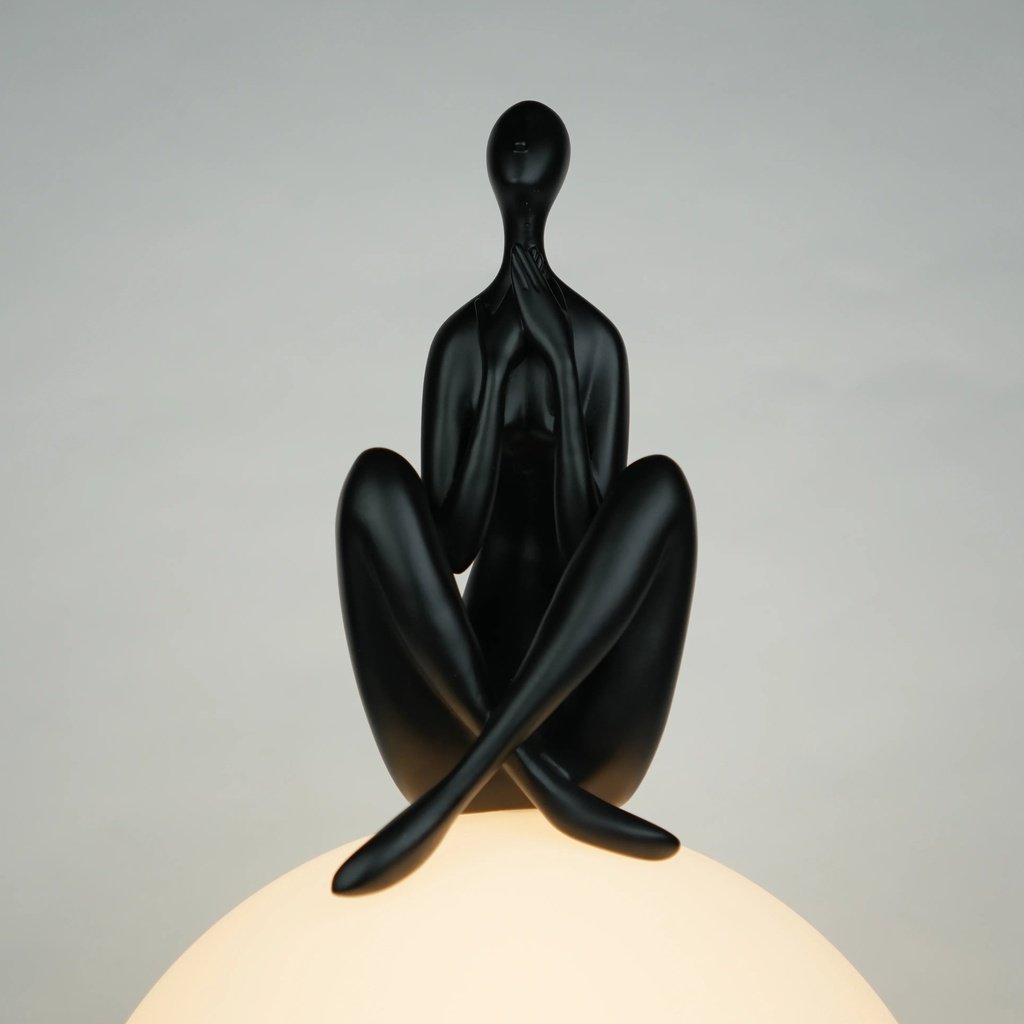 The sculptural element of the lamp, a serene figure in meditation, symbolizes quiet reflection and the illumination of the mind. Its meditative posture inspires mindfulness and creativity, making it a thoughtful addition to studios, offices, and creative spaces. This lamp transcends functionality, offering a meaningful gift for those who appreciate art, symbolism, and modern design.