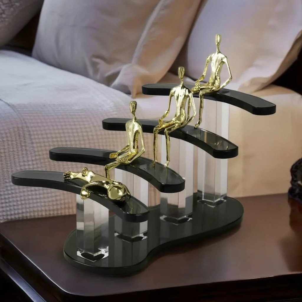 Appealing to collectors and design aficionados, this décor piece is rich with symbolic potential. Its abstract human forms invite open interpretation, representing themes like teamwork, balance, and personal growth. This makes the Golden Ascend Form not only visually engaging but also deeply resonant on an emotional level.