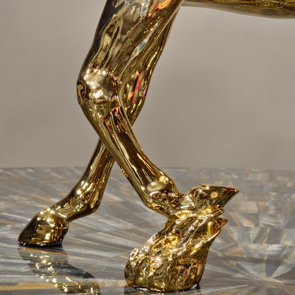 Bring the spirit of freedom and elegance into your home with the Golden Gallop Horse. This striking figurine captures the majestic beauty of a galloping horse, adding a touch of luxury and movement to any room. Crafted with care and finished in radiant gold, it’s a piece that speaks both to the eye and the heart.