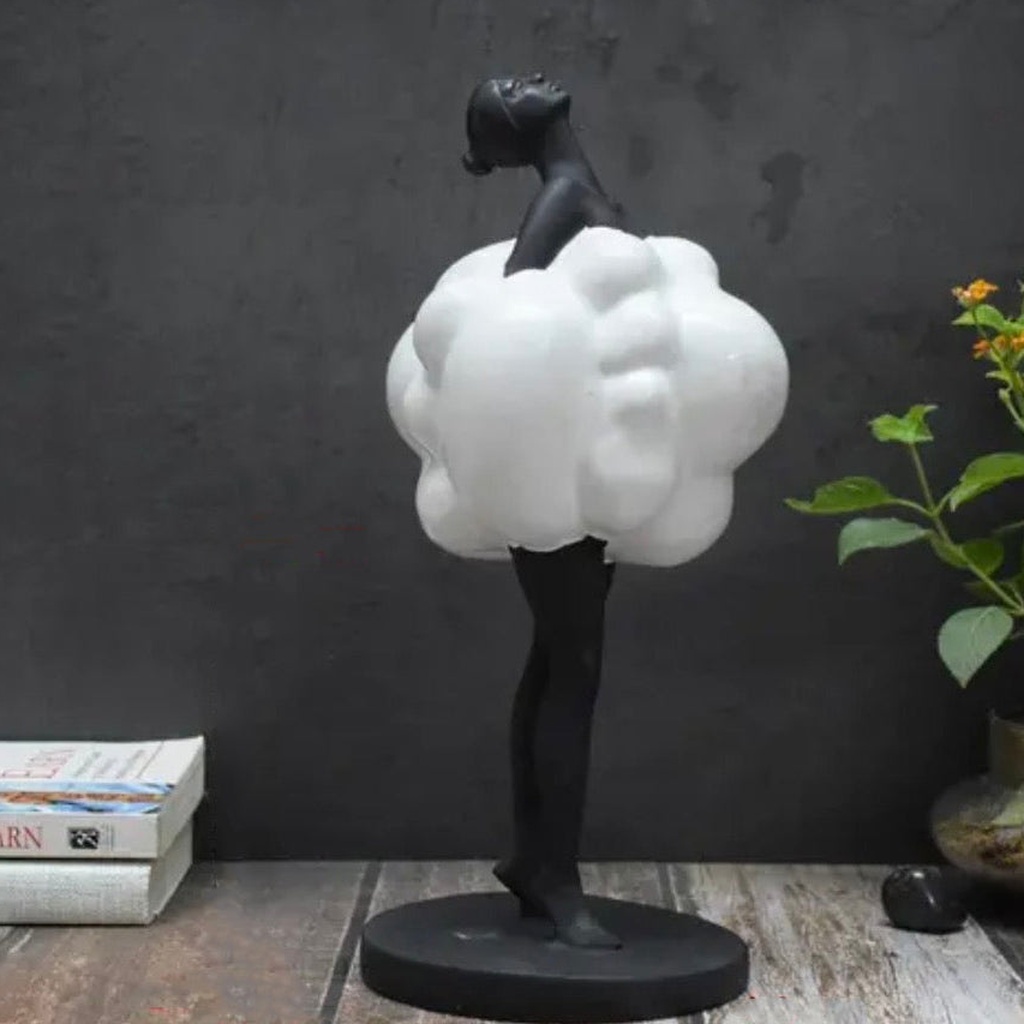 The Graceful Cloud Lady features a sleek black figurine adorned with a delightful, fluffy white cloud design. This combination creates a stunning contrast that draws attention wherever it is placed. It’s more than just decor; it’s a work of art that enhances the ambiance of your living room, bedroom, or office.