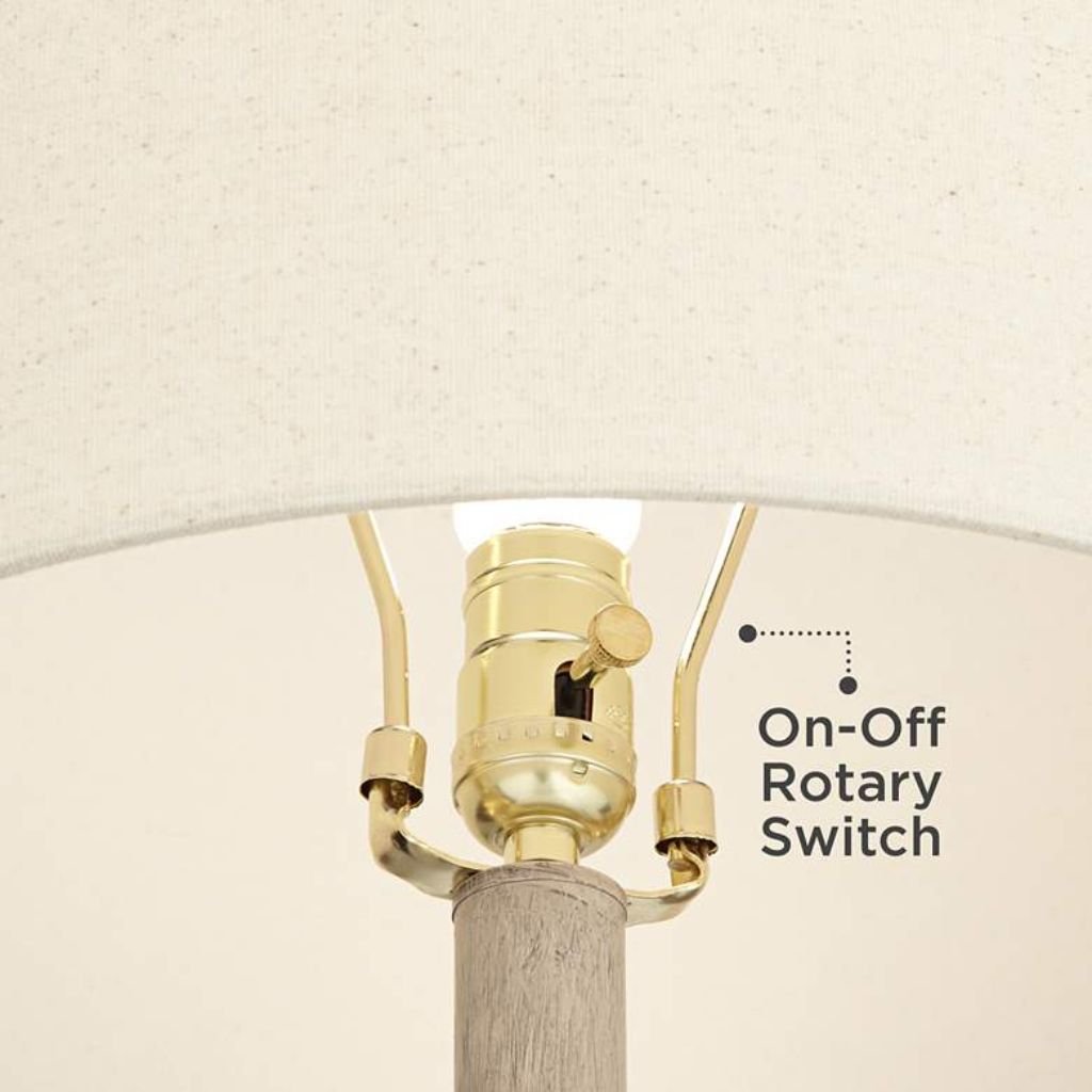 • Off-white oatmeal fabric drum shades for soft diffusion
