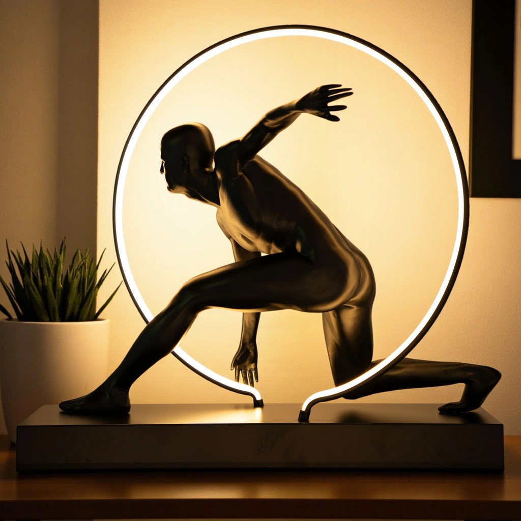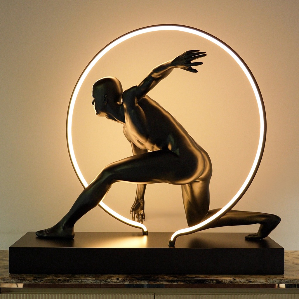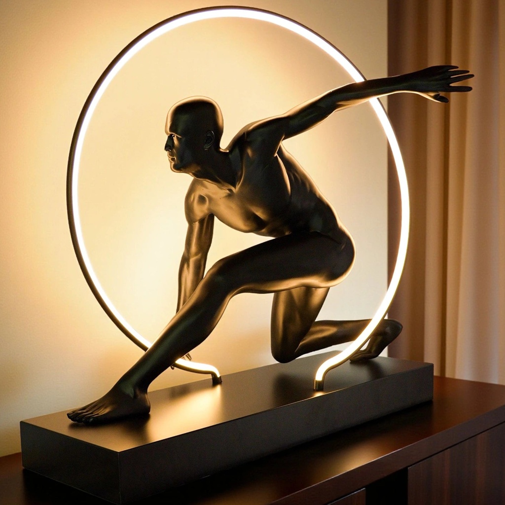This Luminous Motion Sculpture is the absolute centerpiece of my living room! The sleek, matte black finish gives it such a high-end, gallery feel, and the way the integrated LED ring frames the athlete in motion is pure genius. It casts a stunning, warm glow that highlights every detail of the musculature, making it a total conversation starter. It’s bold, modern, and feels incredibly premium—a must-have for anyone who loves unique, artistic decor!