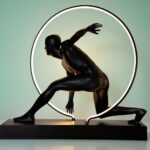 The sculpture‘s matte black finish exudes contemporary elegance, providing a luxurious yet understated touch to any environment. Its bold, dynamic form is masterfully crafted, capturing the essence of movement and poise. The surrounding illuminated ring serves as a radiant halo, drawing the eye and creating a striking visual centerpiece. This exquisite piece of art is more than decor; it is an expression of sophistication and style.