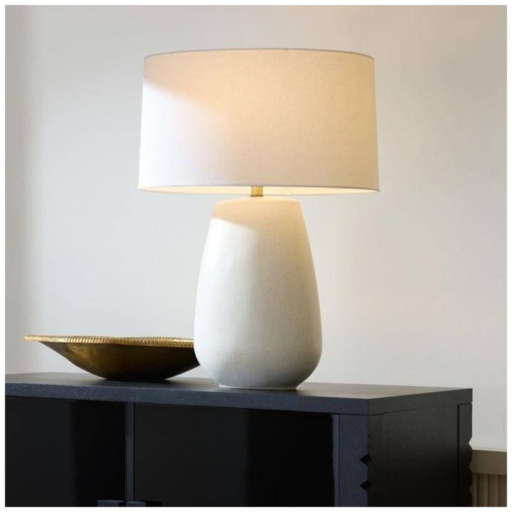 Matte ivory is one of those finishes that works in almost any room — warm enough to feel inviting, neutral enough to never compete. This ivory ceramic lamp pairs that finish with a true ceramic body, giving it the smooth, dense surface quality that sets fired clay apart from resin or plaster alternatives. The result is a lamp that feels considered and well-made without drawing unnecessary attention to itself.