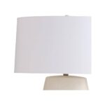 A matte finish on ceramic does something a gloss glaze cannot — it softens the lamp’s presence and lets the form speak for itself without reflective distraction. The ivory tone sits in warm, creamy territory that shifts subtly under different lighting conditions, reading cooler in daylight and warmer under incandescent bulbs.