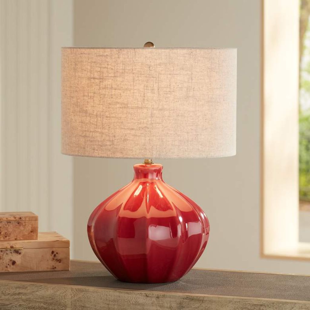 This table lamp from 360 Lighting combines Mid-Century and modern design inspiration with artisanal craftsmanship. Its ribbed ceramic body and textured shade provide both decorative appeal and functional lighting, making it an ideal accent for contemporary or transitional interiors. For more on the history and role of a lamp and the impact of ambient lighting in interiors, these references are helpful.