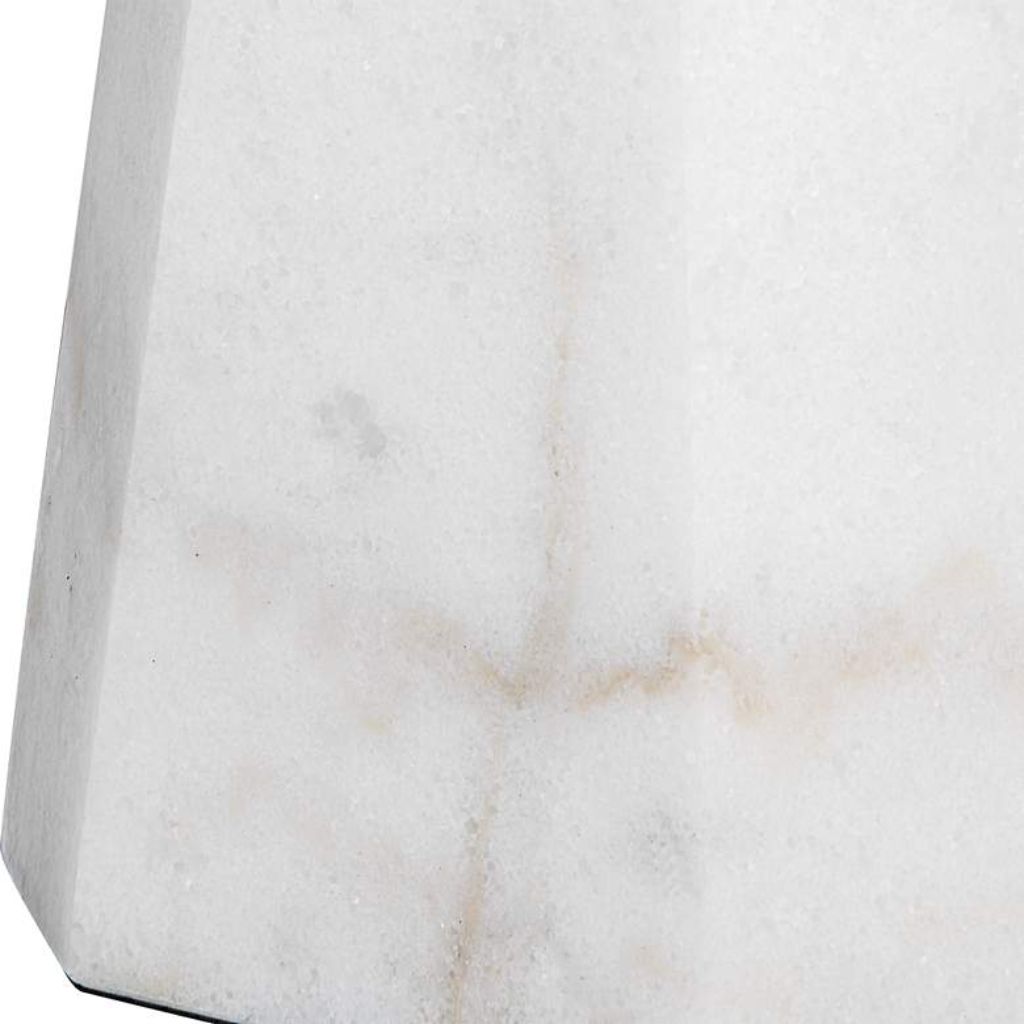 The base alone tells the story — honed white marble with natural gray veining, each line moving through the stone in a pattern that no two bases will ever replicate exactly. The Citadel by Uttermost, designed by Matthew Williams, is a lamp built on the premise that genuine natural material needs no embellishment beyond the right frame. Antique brass finish metal accents provide that frame — warm, precise, and proportioned to complement the cool white and gray of the stone without competing with its surface complexity. The charcoal gray drum shade above is an unusually sophisticated choice for a white marble base — darker than the conventional off-white or cream, it creates a deliberate tonal tension with the pale stone below that reads as considered and current. This white marble table lamp weighs 9 pounds and stands nearly 29 inches tall, bringing the kind of material integrity to a side table or console that decorative finishes spend their entire careers trying to approximate. The shade at 17 inches tall is notably elongated — reinforcing the lamp’s vertical presence with a silhouette that is confident and architecturally precise.
