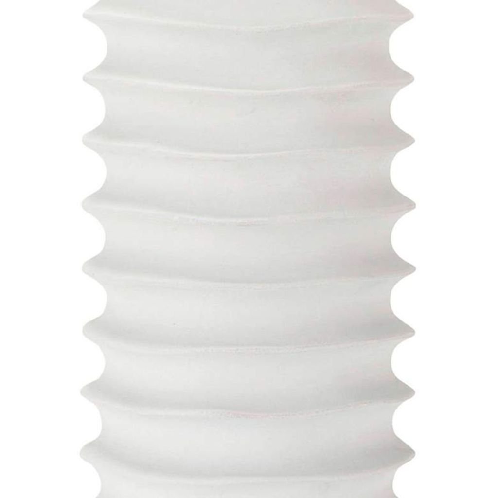 A natural fit for modern, Scandinavian, coastal, or minimalist interiors. The white-on-white palette and columnar form work particularly well in bright, airy rooms where clean lines and neutral tones define the space.