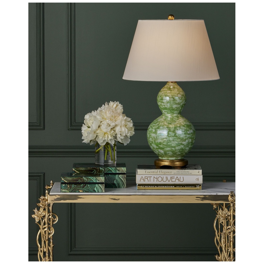 I am absolutely in love with this lamp! The green marbleized finish is so unique and gives off such a high-end, vintage-glam vibe. It’s a substantial, premium piece that adds the perfect pop of color to my sitting room. The gold base and finial are such elegant touches that really highlight the quality. It provides a beautiful, warm glow that makes the whole space feel curated and upscale!