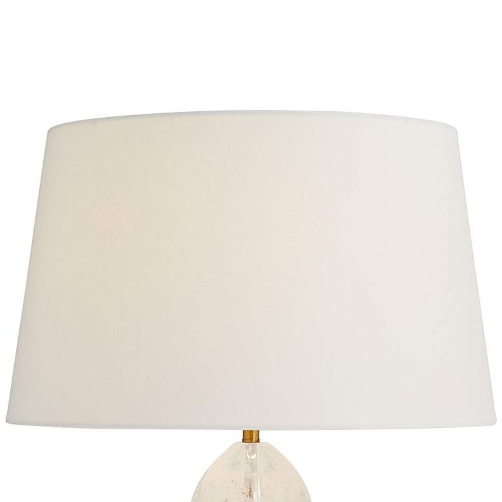 A snow marble orb stacked with an opal swirl crystal accent makes this marble table lamp genuinely hard to categorize — it sits at the intersection of natural material and sculptural glam in a way that works across both modern and transitional interiors. An antique brass finish over polished steel frames the stacked orbs cleanly, and a linen empire shade brings the whole composition to a soft, warm finish. Each marble orb will carry its own natural veining variation.