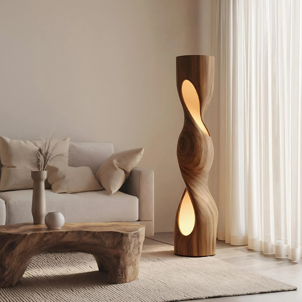 ORGANIC SCULPTURAL TWISTED FLOOR LAMP OAK