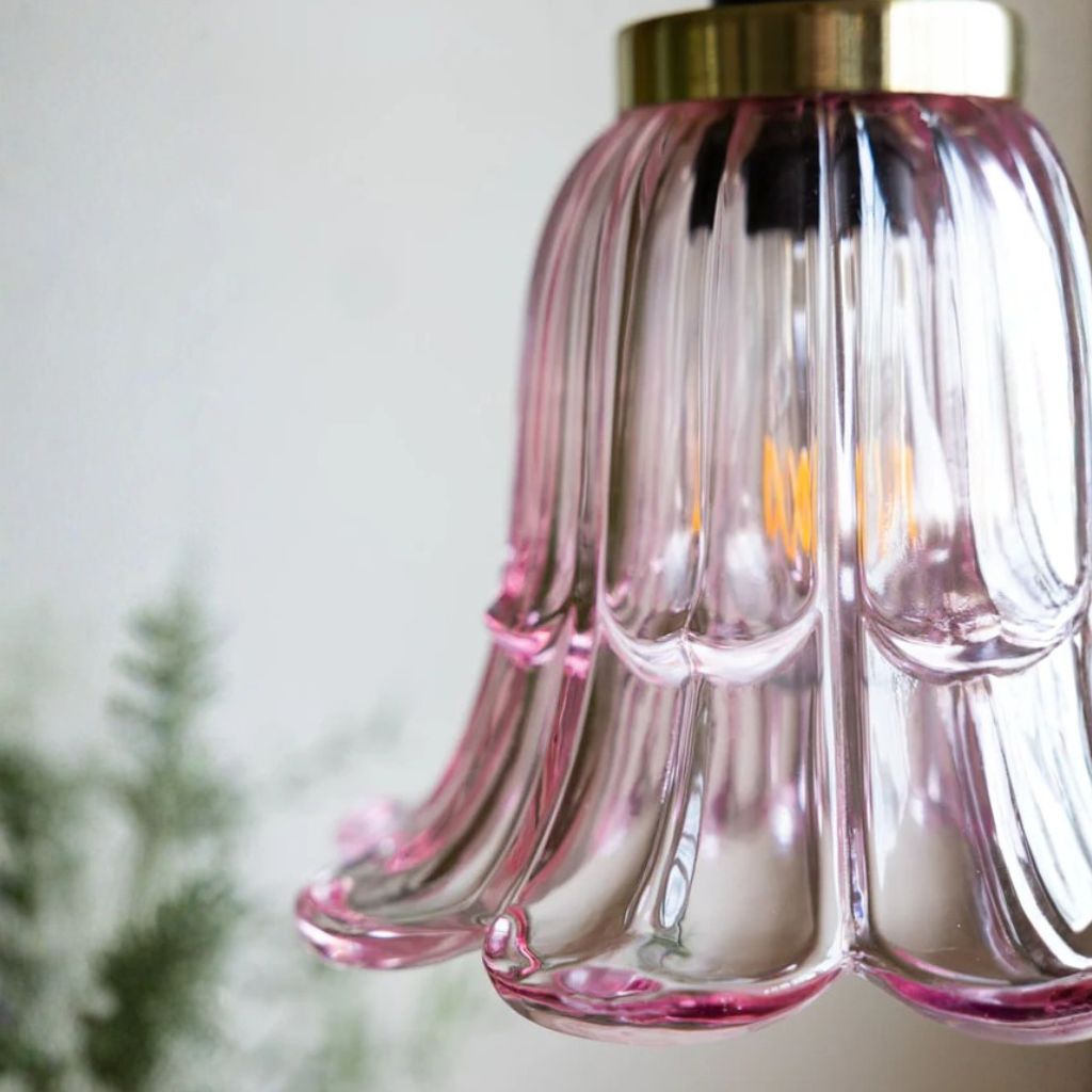 PALE PINK VINTAGE STYLE GLASS EASYFIT CEILING LIGHT SHADE