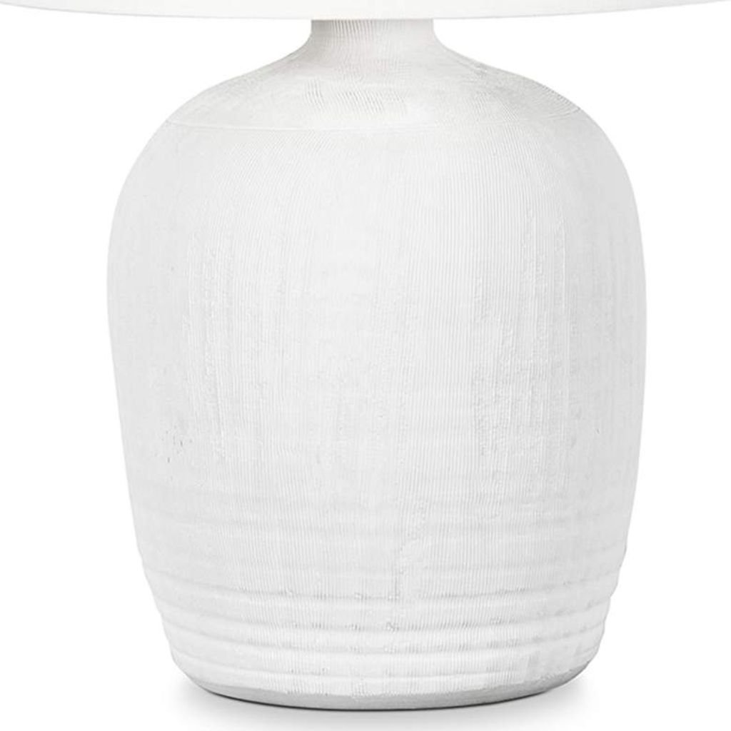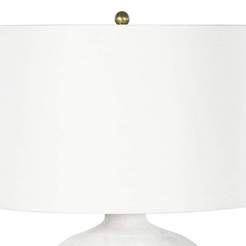 Standing 28 inches high and weighing 14 lbs, this Phoenix table lamp offers both style and functionality. Its crisp white finish, hand-applied glaze, linen drum shade, and natural brass accents create a versatile and sophisticated design. Whether placed on a bedside table, console, or living room side table, this ceramic jug lamp from Regina Andrew Design enhances your décor with charm, elegance, and modern flair.