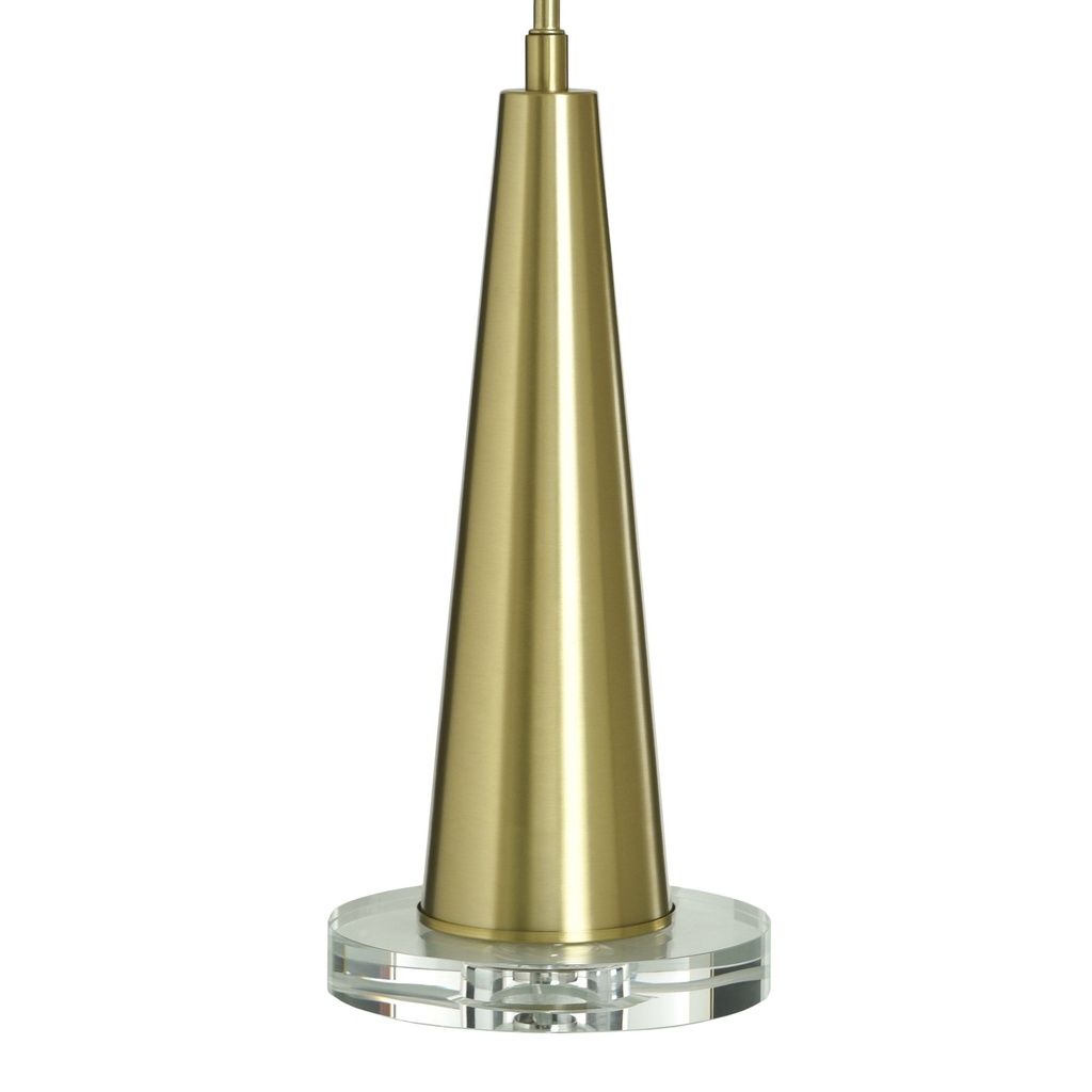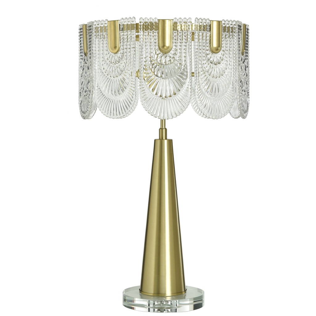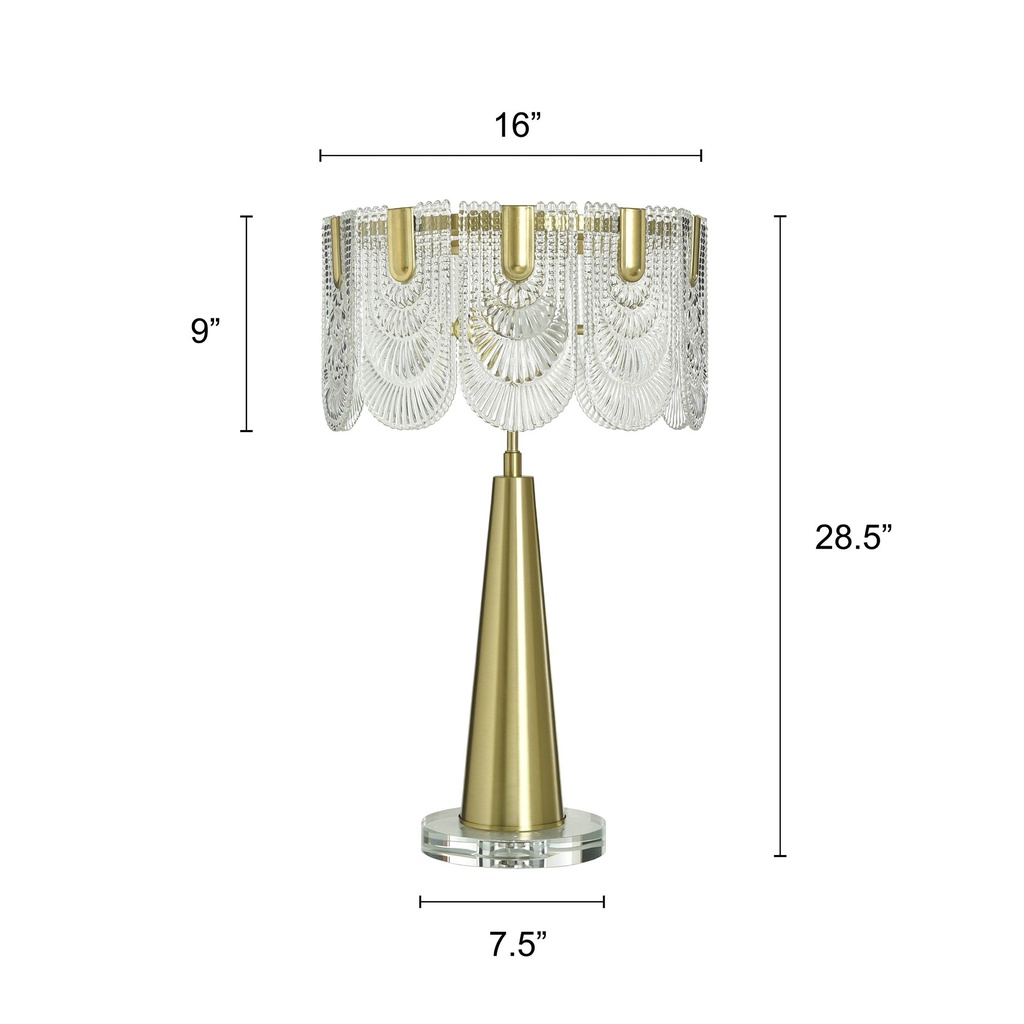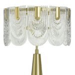 This brass table lamp blends crystal, glass, and polished metal into a single cohesive design that reads as classic glam without tipping into excess. At 28 inches tall and 16 inches wide, it has the presence to anchor a living room side table or bedroom nightstand comfortably. The polished brass finish brings warmth and reflectivity that suits both bright and low-light settings equally well.