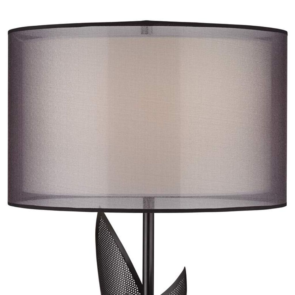 Black metal finish base with mesh “leaves” rising in a sculptural design