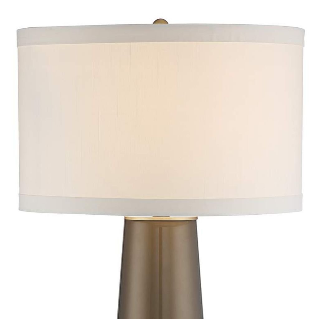 This table lamp from Possini Euro Design brings refined height and elegant shimmer to contemporary interiors. Designed to add presence to larger spaces, these lamps combine sculptural glass forms with soft fabric shades to deliver balanced lighting and decorative sophistication. To better understand the design evolution of a lamp and the role of ambient lighting in interior settings, these references offer helpful background.